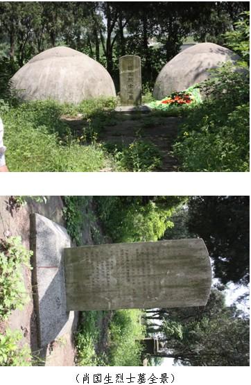 1952年4月5日,句容县人民政府在白兔镇北10公里的郑庠自然村北,建有肖国生烈士墓,双墓并立,墓前建高1.5米纪念碑,上刻“浩气参天”四个大字,纪念碑背面刻有碑文。